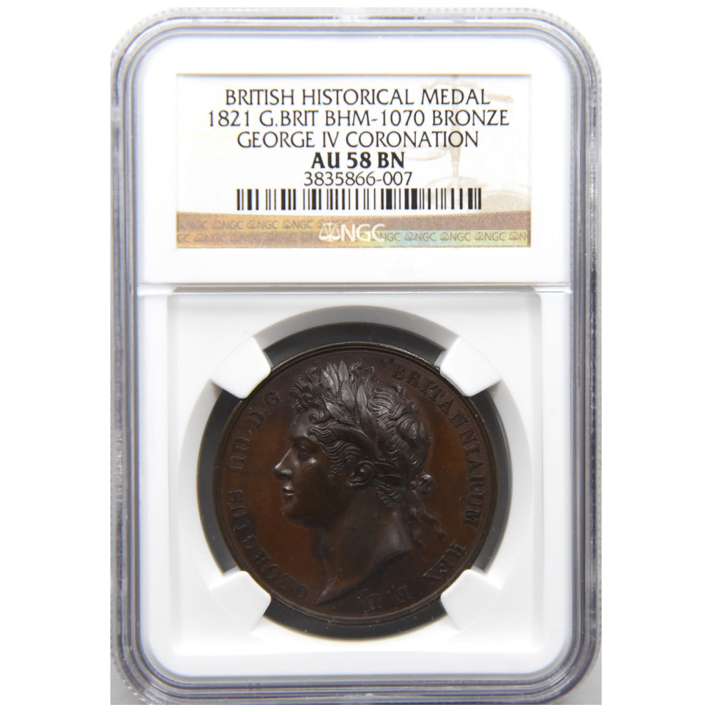 イギリス 1821 ジョージ4世 メダル 銅貨 NGC AU 58 BN 戴冠記念 3835866007