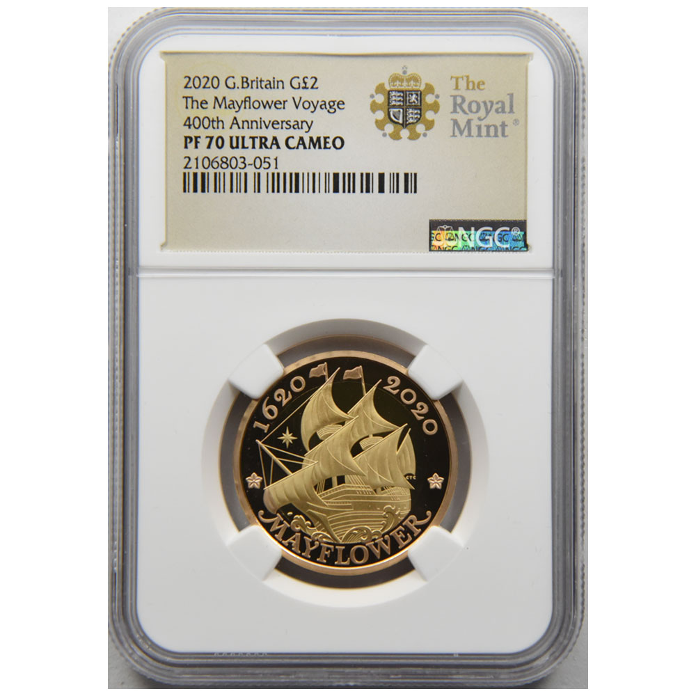 イギリス 2020 エリザベス2世 2ポンド 金貨 NGC PF 70 ULTRA CAMEO メイフラワー号出航400周年 2106803051