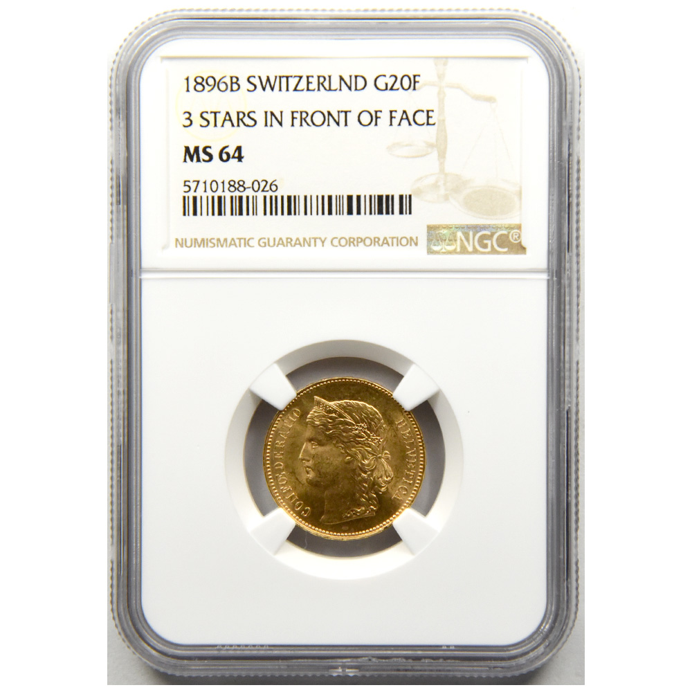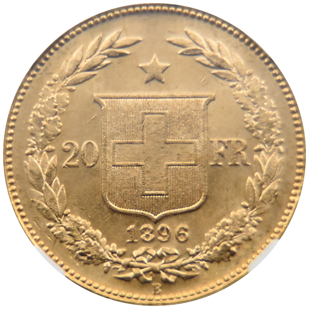スイス 1896B G20F 金貨 NGC MS 64 ヘルベチカ 5710188026