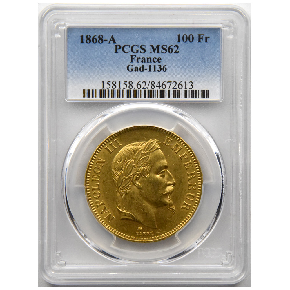 HOME > 商品一覧 > フランス 1868-A ナポレオン3世 100 フラン 金貨 PCGS MS 62 84672613