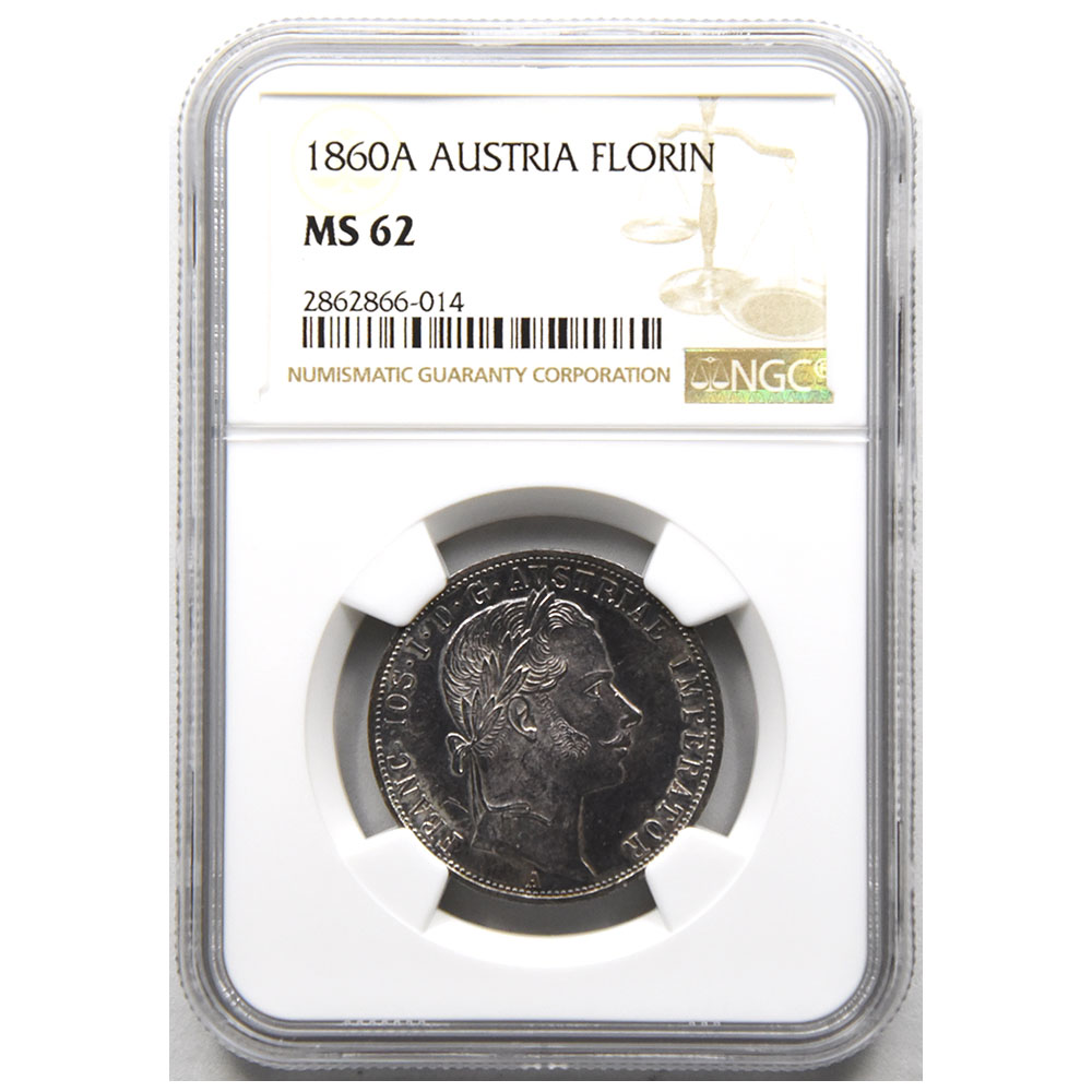 オーストリア 1860A フランツ・ヨーゼフ1世 FLORIN 銀貨 NGC MS 62 フローリン銀貨 2862866014