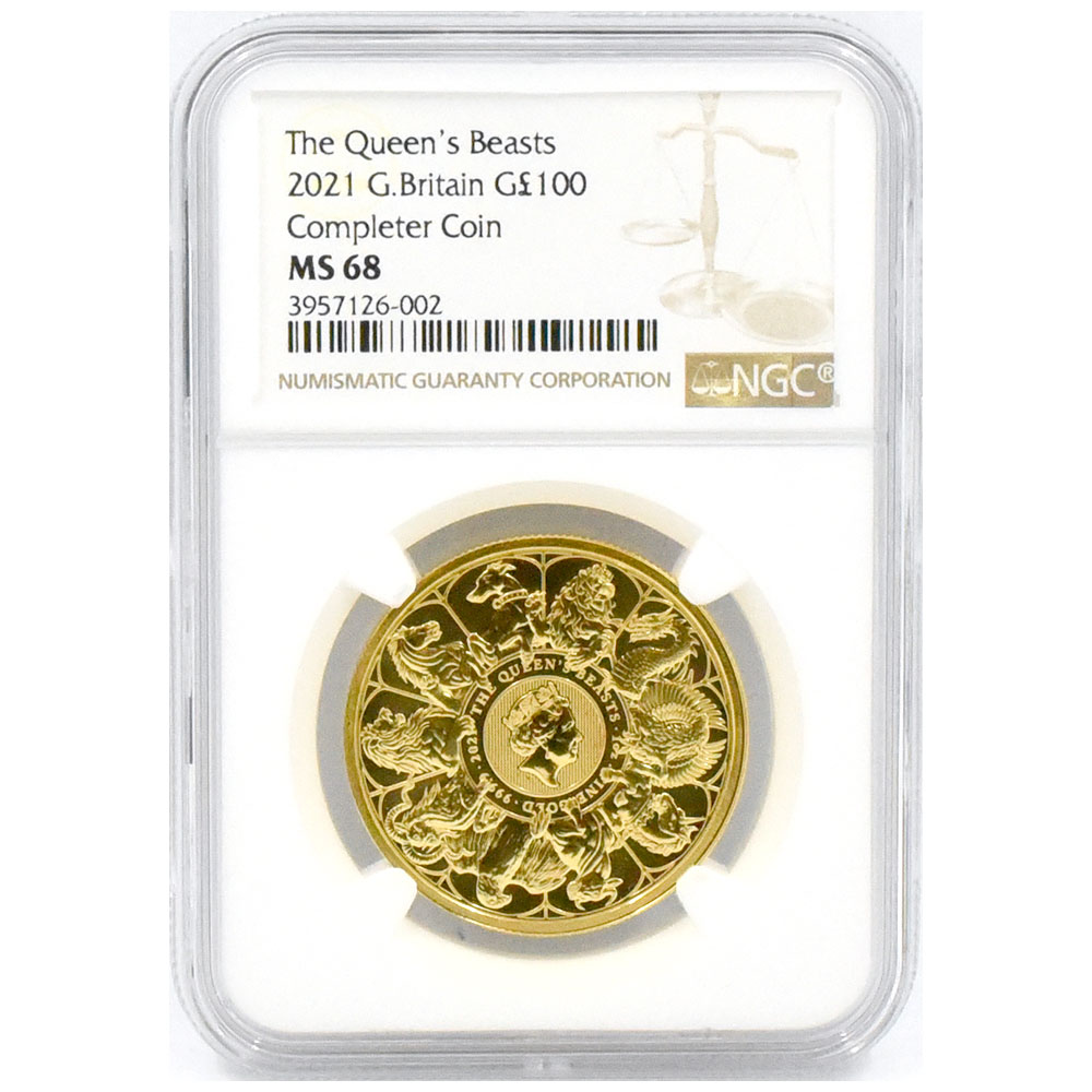 イギリス 2021 エリザベス2世 100ポンド 地金型金貨 NGC MS 68 クイーンズビースト コンプリーター 3957126002