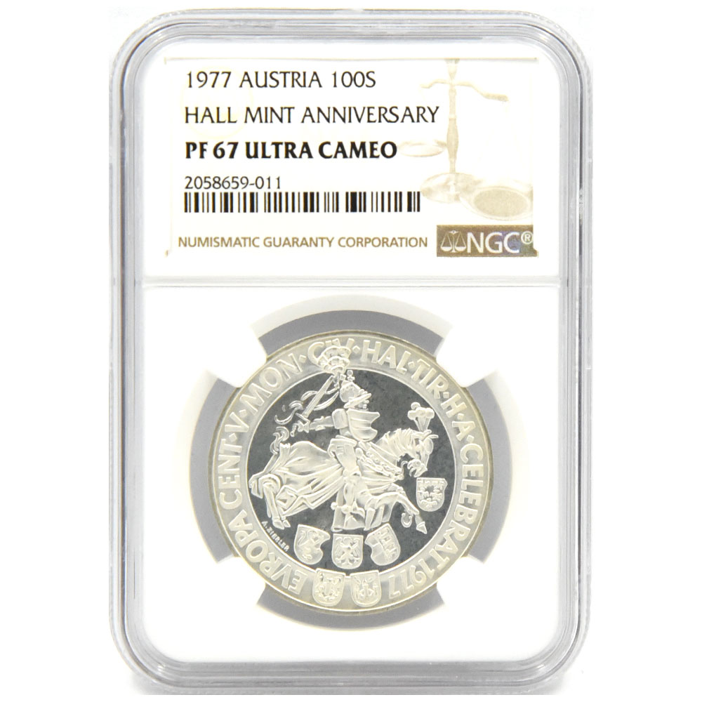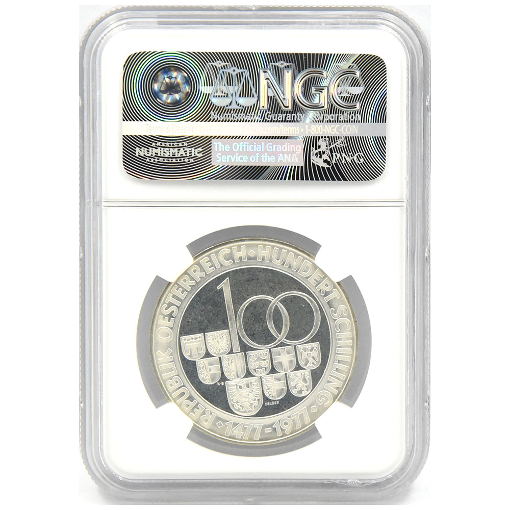 オーストリア 1977 100シリング 銀貨 NGC PF67UC ホール造幣局500周年記念 2058659011