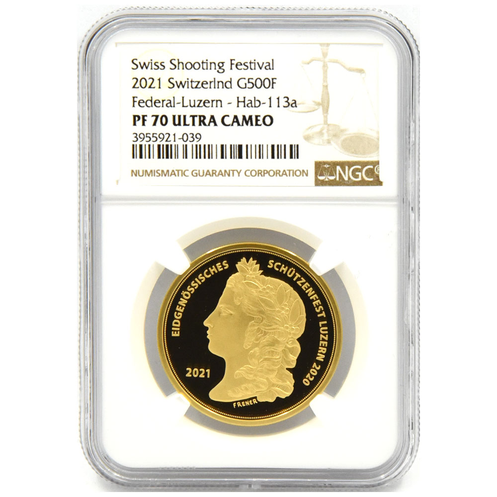 スイス 2021 500フラン金貨 金貨 NGC PF70UC 連邦射撃祭 ルツェルン州 3955921039