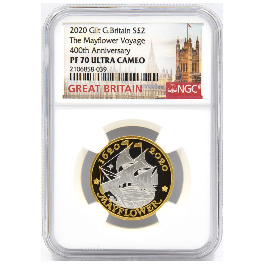 イギリス 2020 エリザベス2世 2ポンド 銀貨 NGC PF 70 ULTRA CAMEO メイフラワー号出航400周年金メッキ付き 2106858039