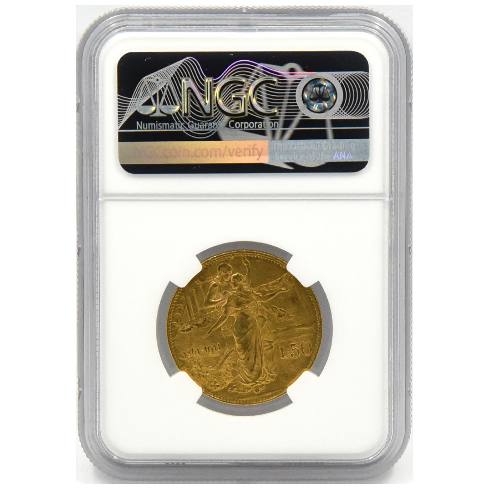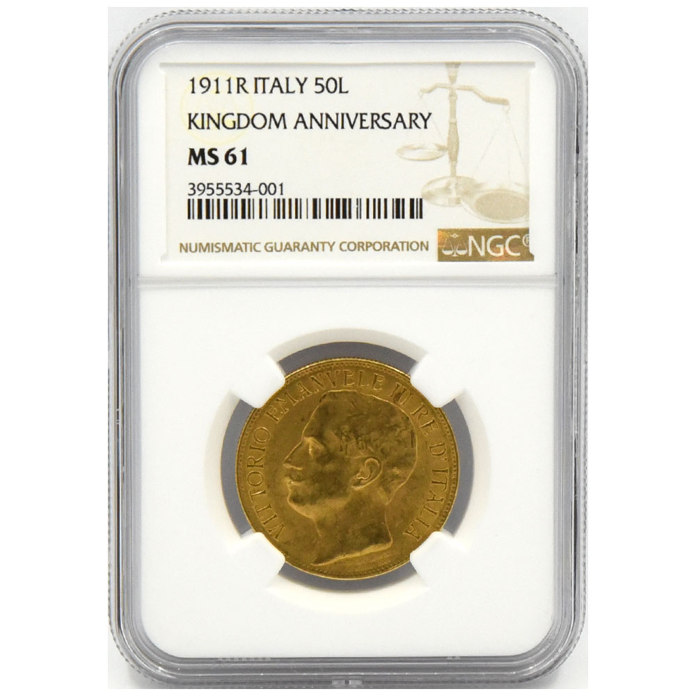 イタリア 1911R ヴィットリオ・エマニュエーレ3世 50リレ 金貨 NGC MS61 王国50周年記念 3955534001