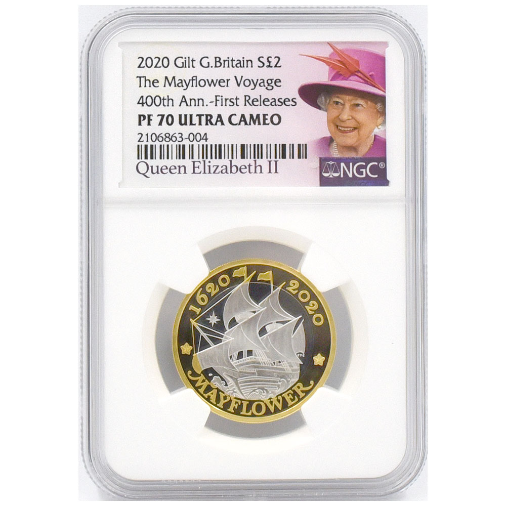 イギリス 2020 エリザベス2世 メイフラワー号出航400周年金メッキ付き 2ポンド 銀貨 2106863004