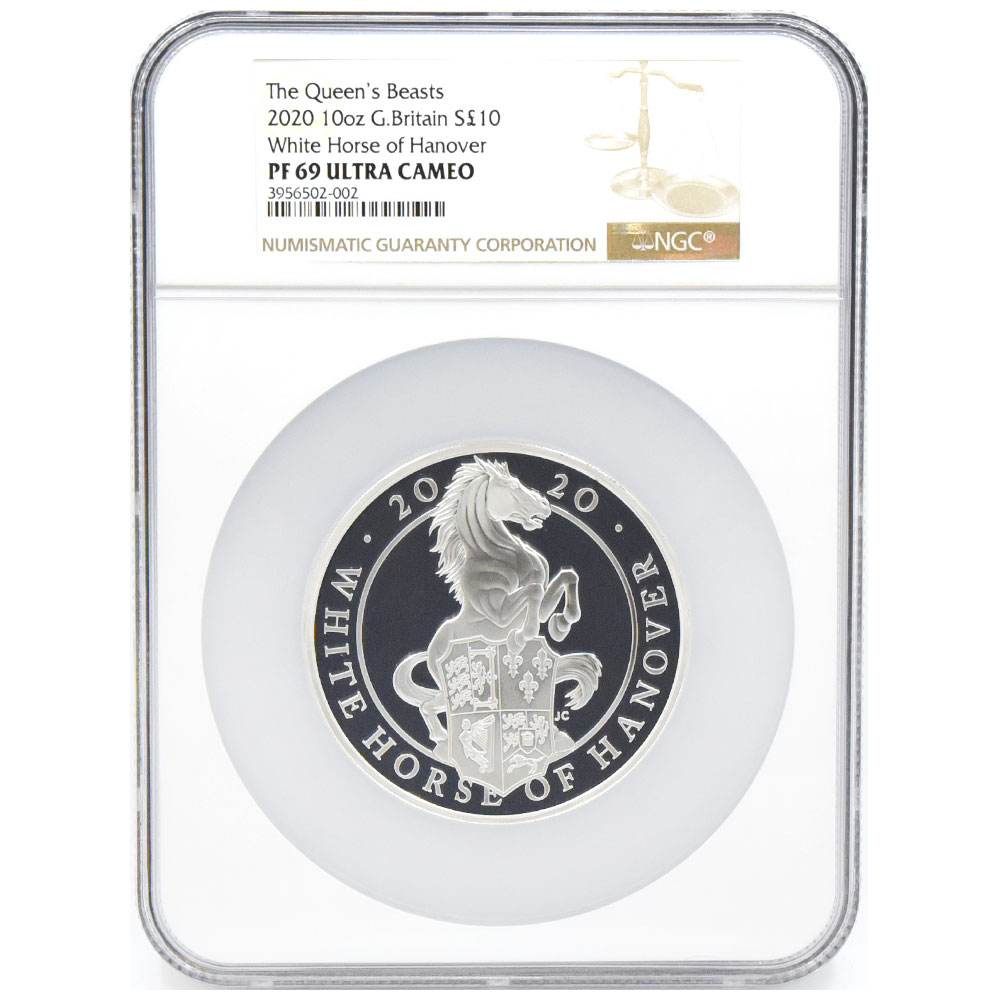 イギリス 2020 エリザベス2世 10ポンド10オンス 銀貨 NGC PF 69 ULTRA CAMEO クイーンズビースト ハノーヴァーの白い馬 3956502002
