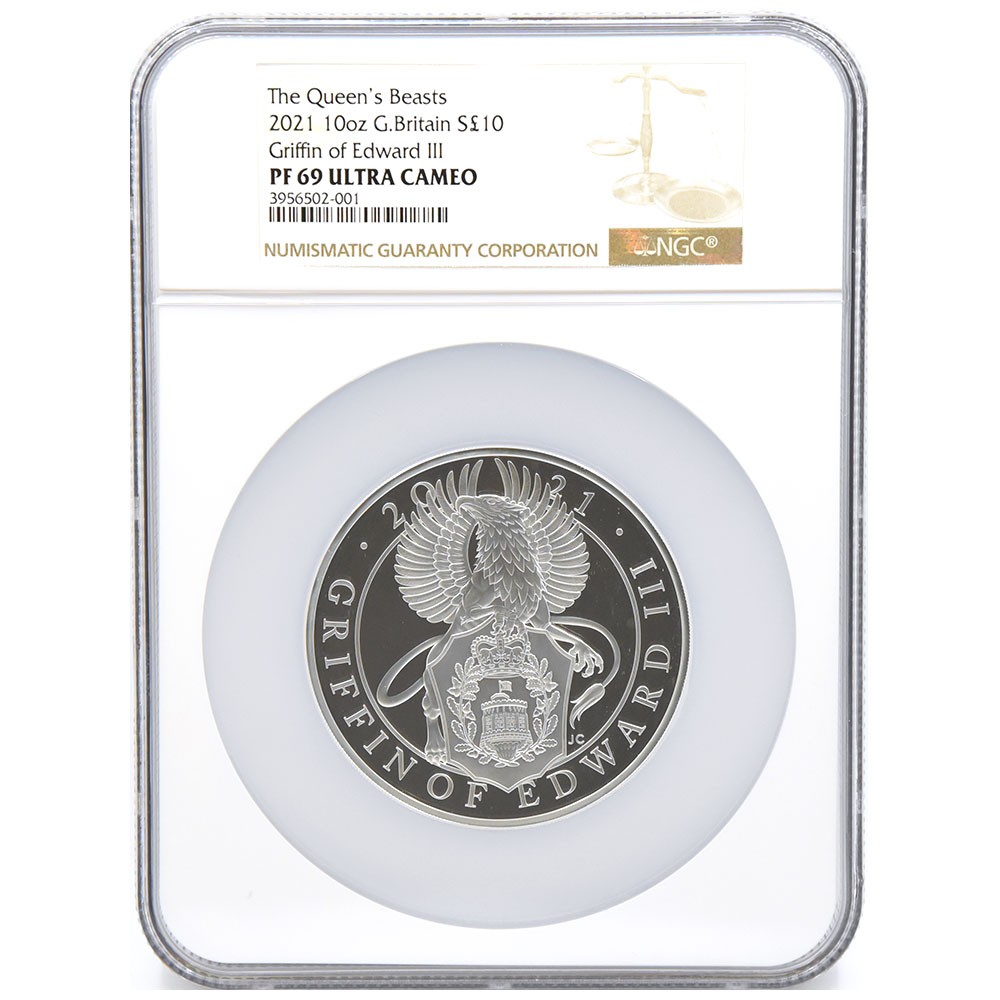 イギリス 2021 エリザベス2世 10ポンド10オンス 銀貨 NGC PF69UC クイーンズビースト エドワード3世のグリフィン 3956502001