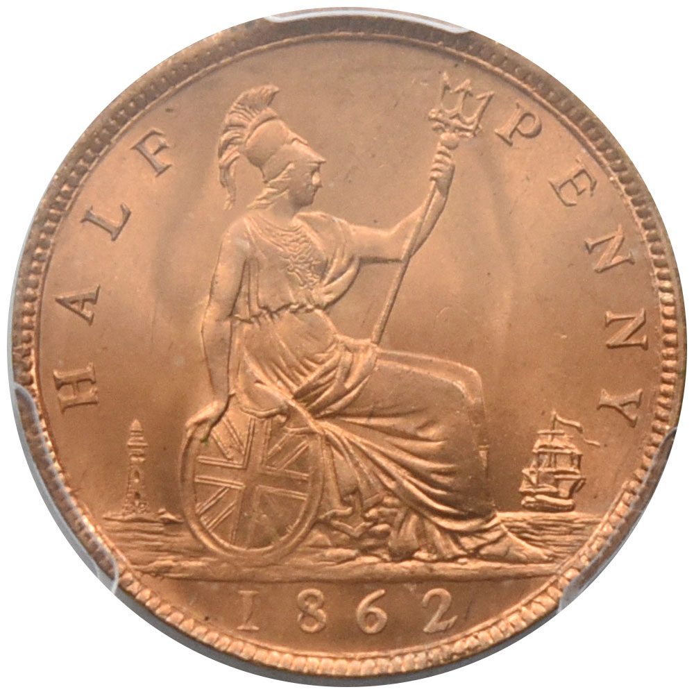 HOME > 商品一覧 > イギリス 1862 ヴィクトリア ハーフペニー 銅貨 PCGS MS 65 RD ブリタニア 26290184