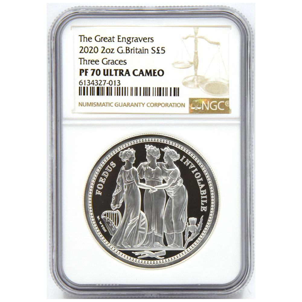 イギリス 2020 エリザベス2世 5ポンド 2オンス 銀貨 NGC PF70UC スリーグレーセス 6134327013