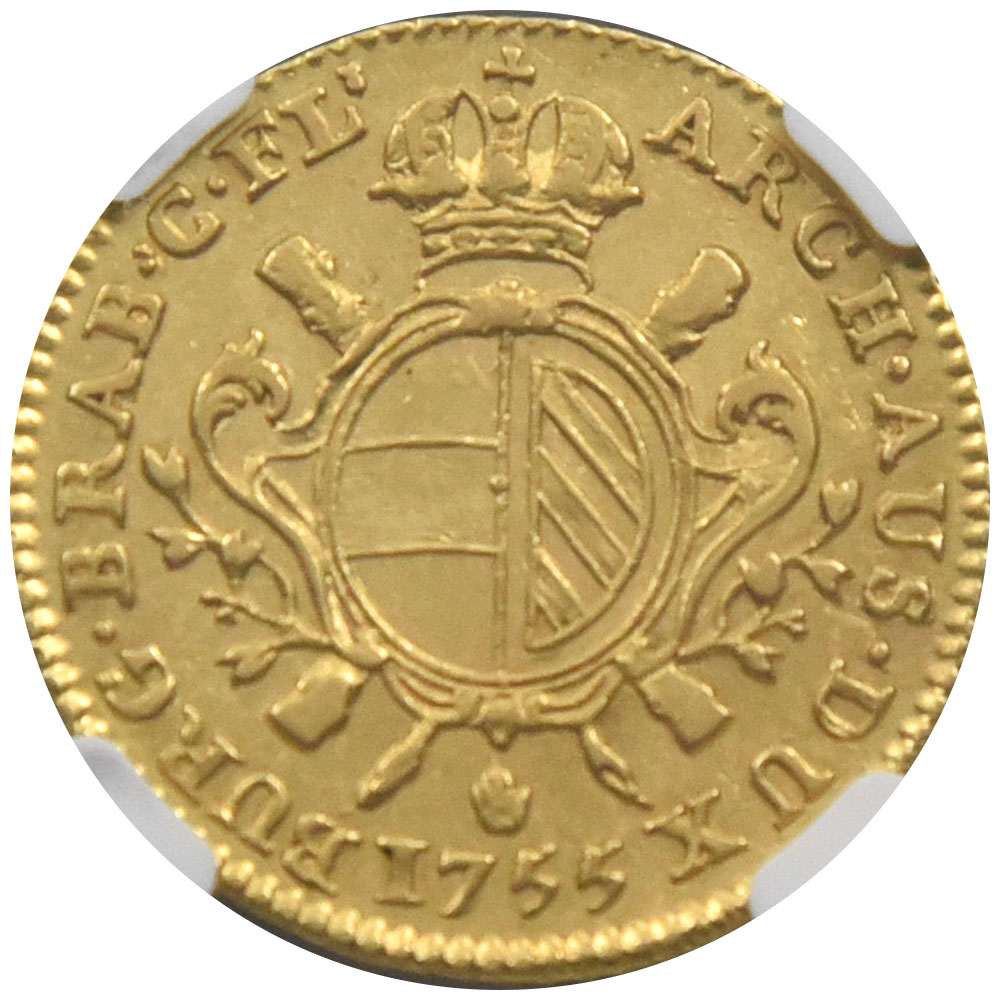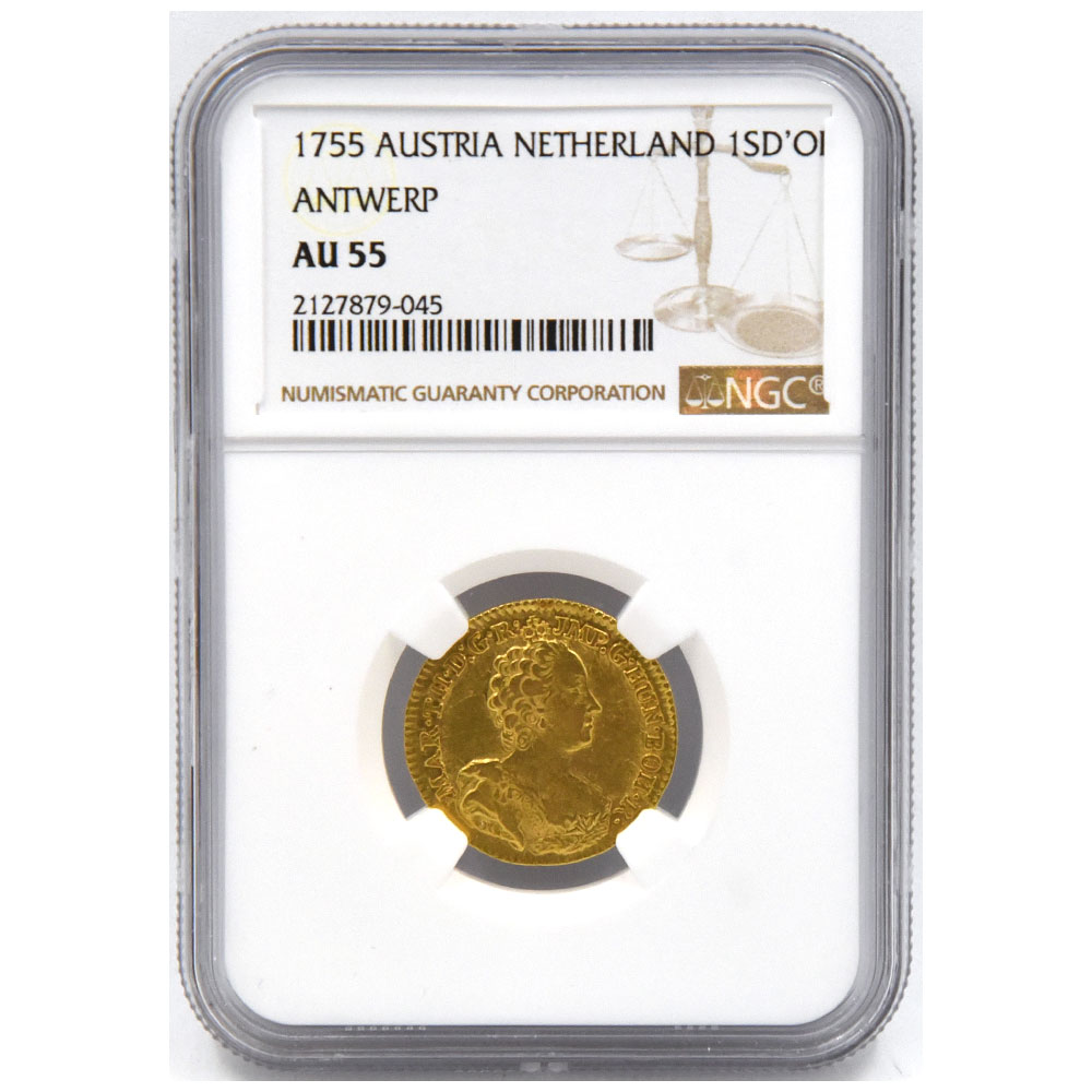 オーストリア領オランダ 1755 1ソブリンドール 金貨 NGC AU55 アントワープ マリア・テレジア 2127879045