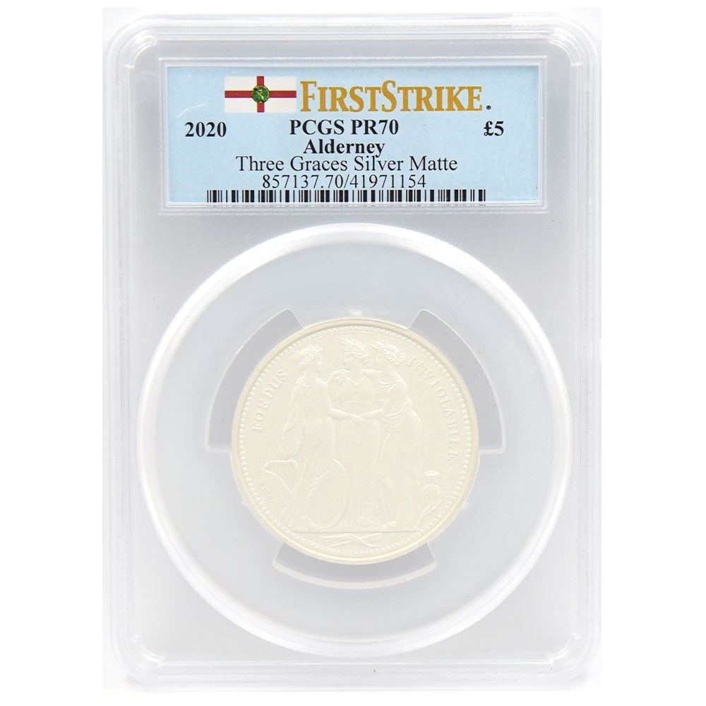 オルダニー 2020 エリザベス2世 5ポンド 2オンス 銀貨 PCGS PR70 スリーグレーセス 41971154