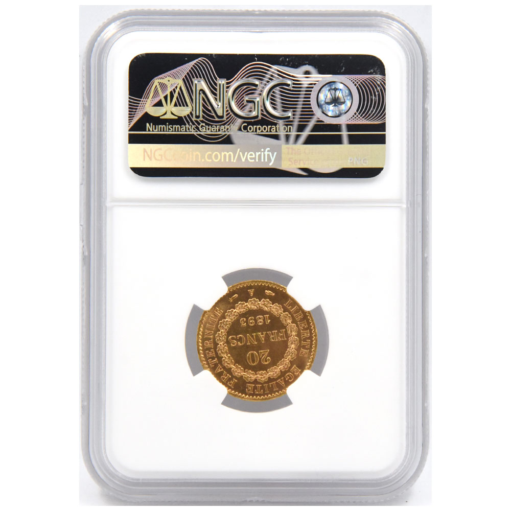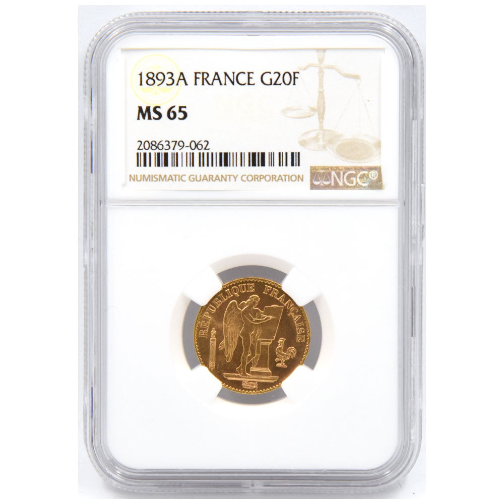 フランス 1893 20フラン 金貨 NGC MS65 エンゼル 2086379062