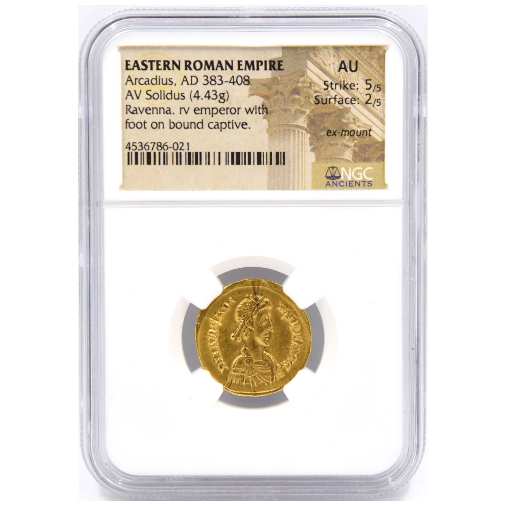 東ローマ帝国 AD 383-408 アルカディウス ソリダス 金貨 NGC AU Strike: 5/5 Surface: 2/5 4536786021