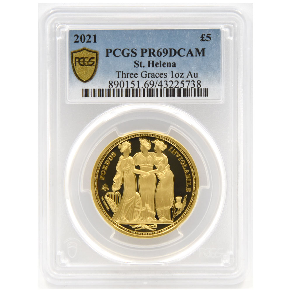 スリーグレーセス金貨 1オンス準最高鑑定PCGS PF69UC スリーグレイセス イギリス 英国 セントヘレナ 2021年 プルーフ 金貨 スリーグレーセス コイン 箱・COA付