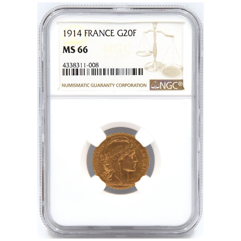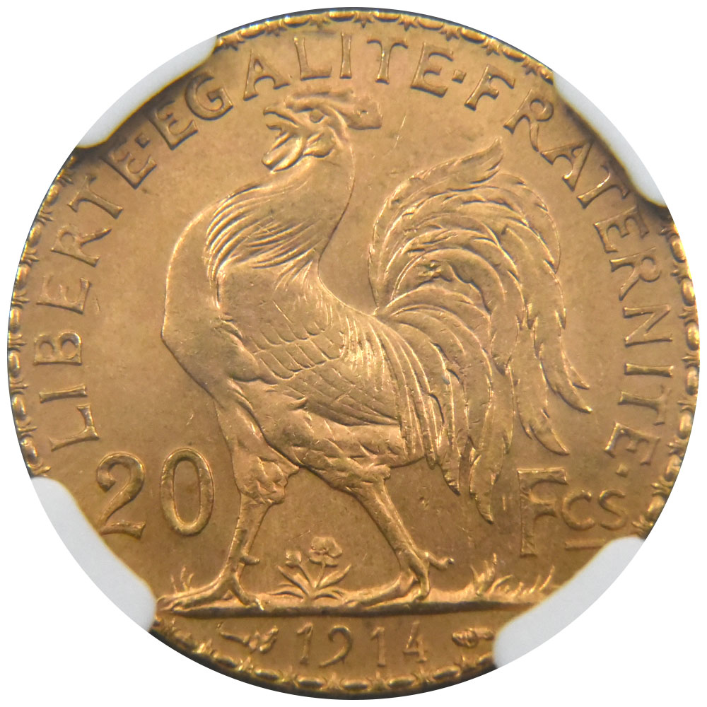 フランス 1914 20フラン 金貨 NGC MS66 ルースター 4338311008