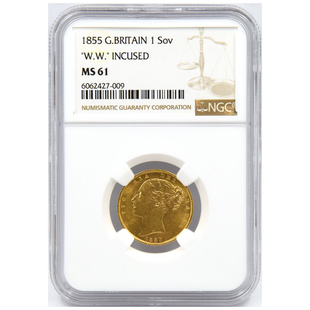 イギリス 1855 ヴィクトリア女王 1ソブリン 金貨 NGC MS61 6062427009