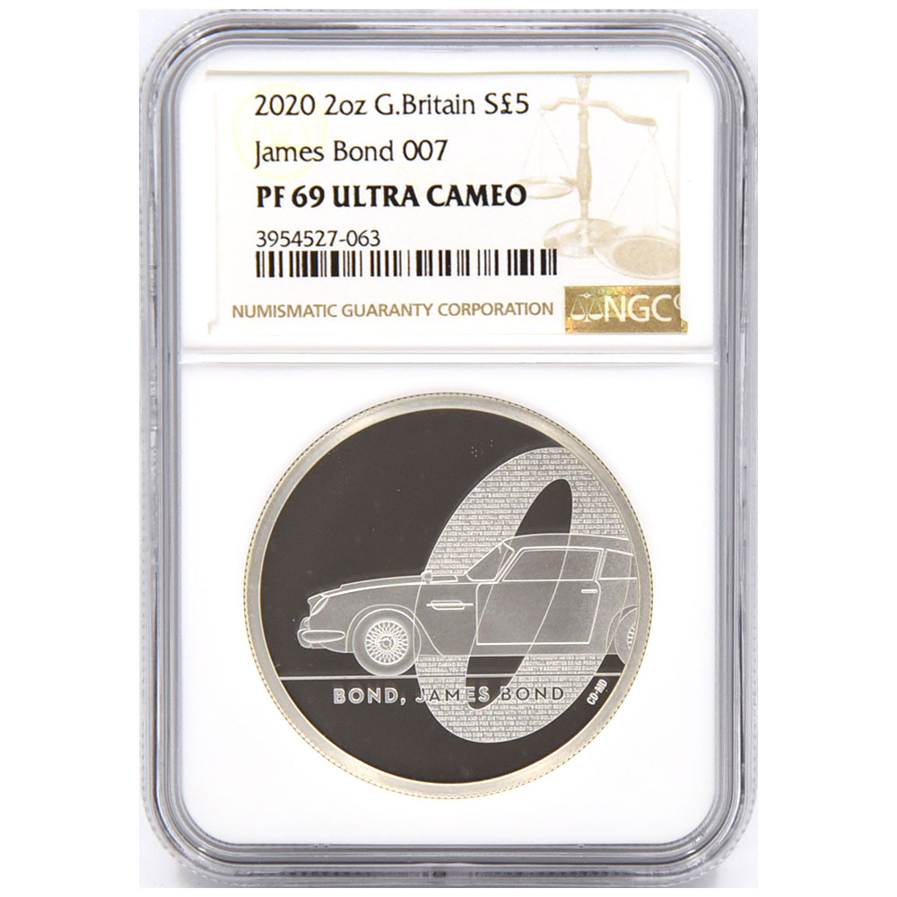 イギリス 2020 エリザベス2世 5ポンド2オンス 銀貨 NGC PF69UC 007 ジェームズ・ボンド 第1貨 3954527063
