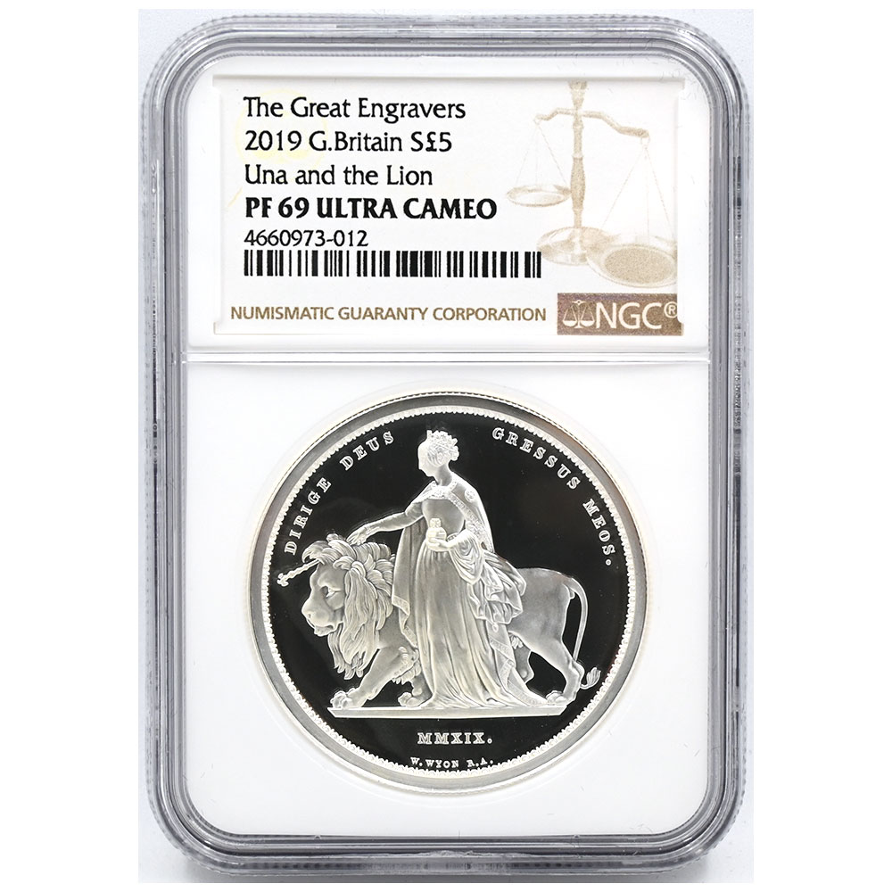 イギリス 2019 エリザベス2世 5ポンド 銀貨 NGC PF69UC ウナ&ライオン 4660973012