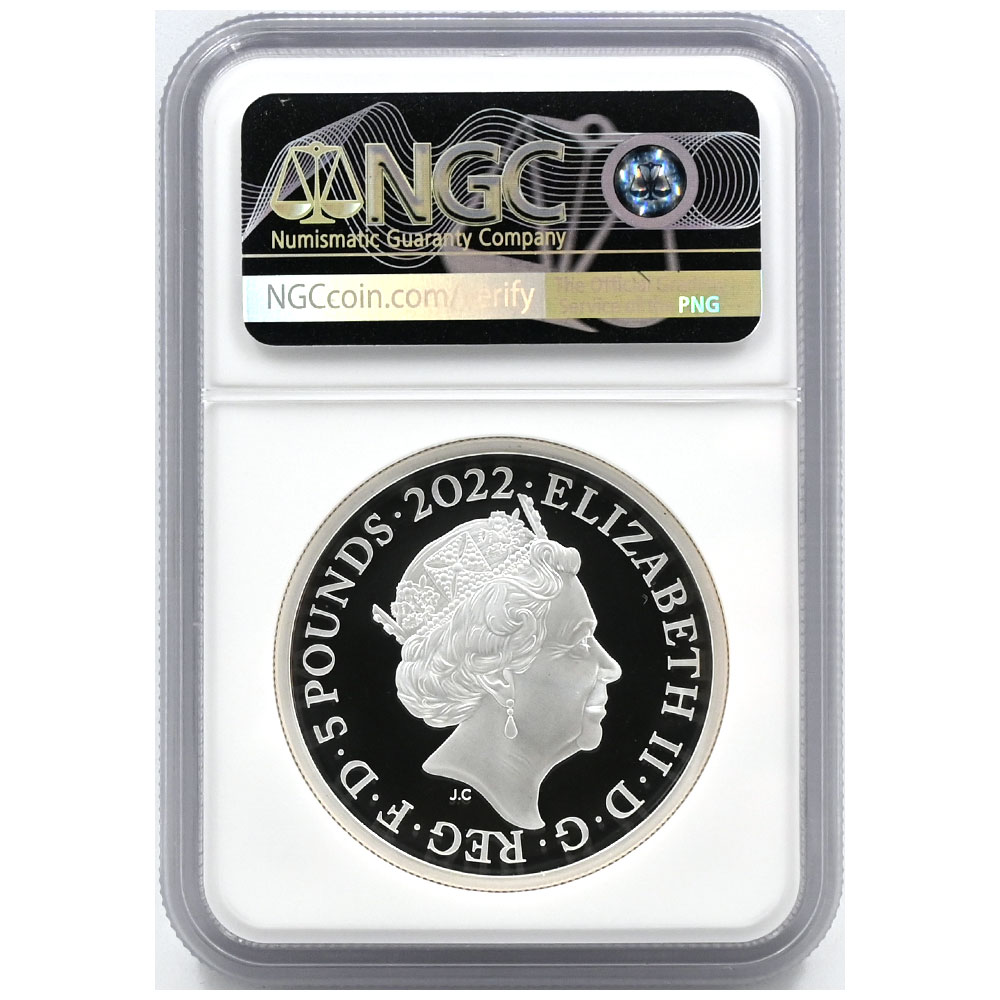 イギリス 2022 エリザベス2世 5ポンド2オンス 銀貨 NGC PF70UC 都市景観 ロンドン 6381139088