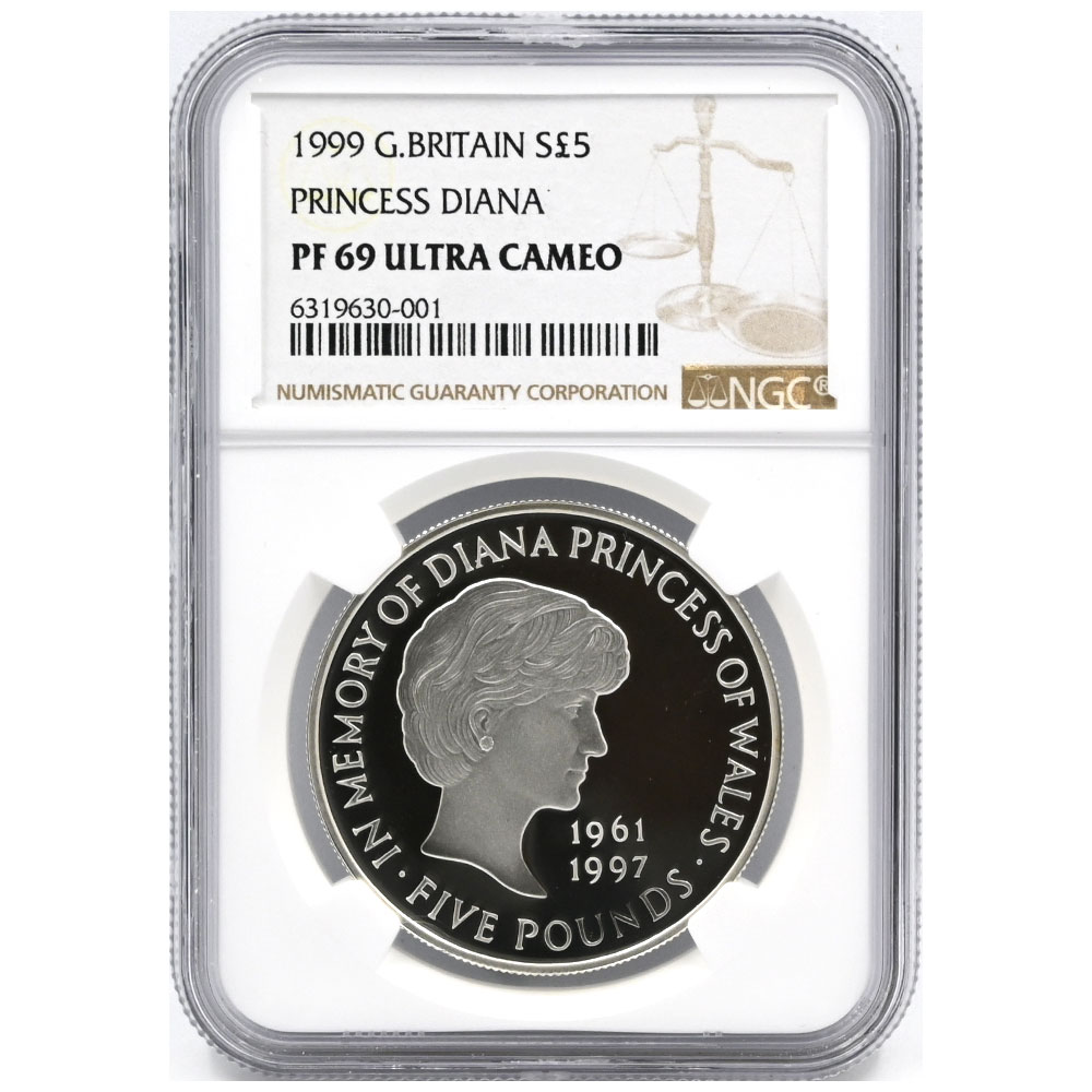 イギリス 1999 エリザベス2世 5ポンド 銀貨 NGC PF69UC ダイアナ妃追悼記念 6319630001