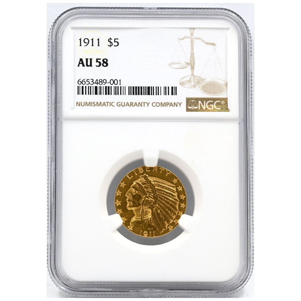 アメリカ 1911 5ドル 金貨 NGC AU58 インディアンヘッド 6653489001