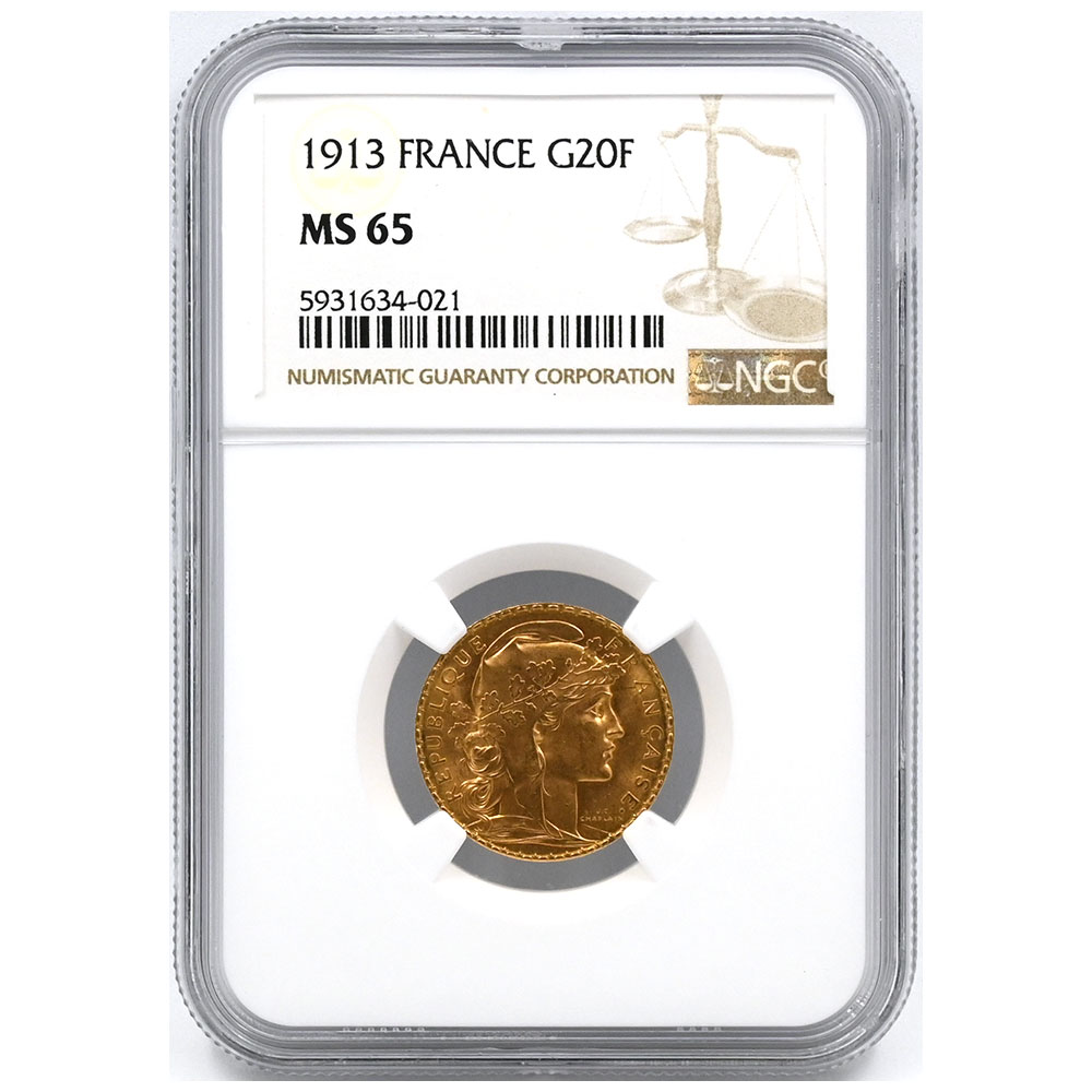 フランス 1913 20フラン 金貨 NGC MS65 ルースター 5931634021