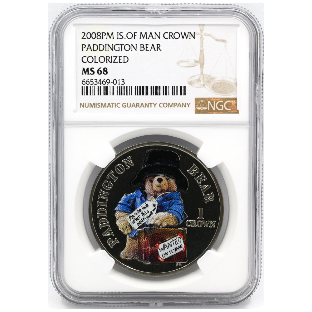 マン島 2008PM エリザベス2世 クラウン 銀貨 NGC MS68 パディントン・ベアー 6653469013