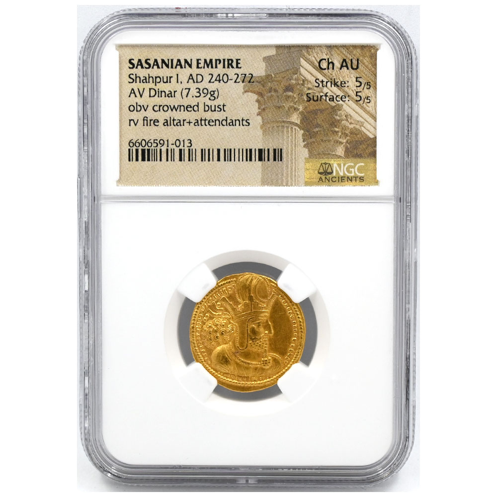 ササン朝ペルシア AD240-272 シャープール1世 ディナール 金貨 NGC Ch AU Strike:5/5 Surface:5/5 祭壇と神官 6606591013