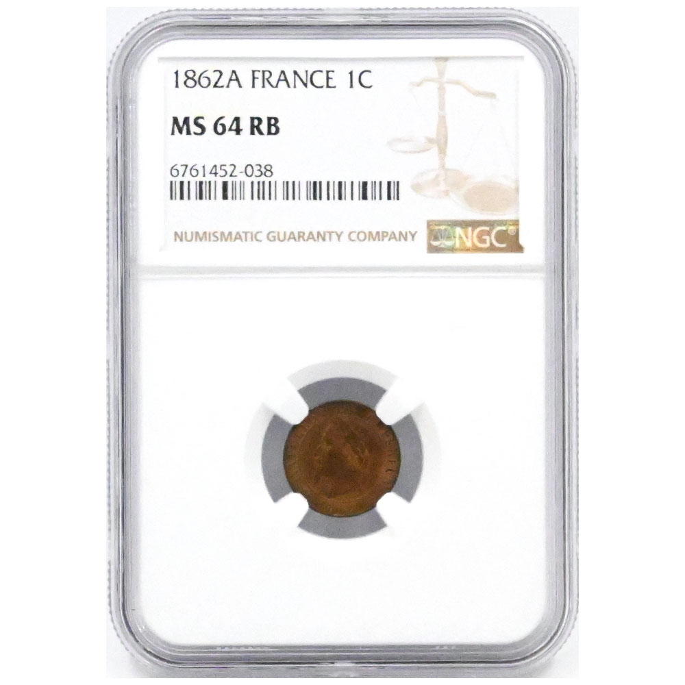 フランス 1862A ナポレオン3世 10サンチーム 銅貨 NGC MS64RB 月桂冠像 6761452038