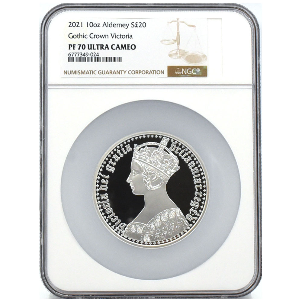 オルダニー 2021 エリザベス2世 20ポンド10オンス 銀貨 NGC PF70UC ゴチッククラウン 6777349024