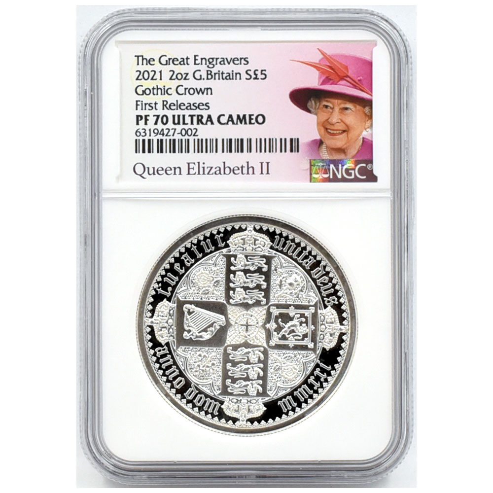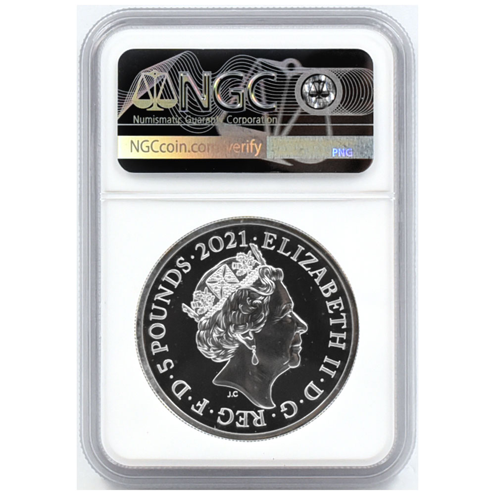 イギリス 2021 エリザベス2世 5ポンド 2オンス 銀貨 NGC PF70UC ゴチッククラウン リバースシールド 6319427002