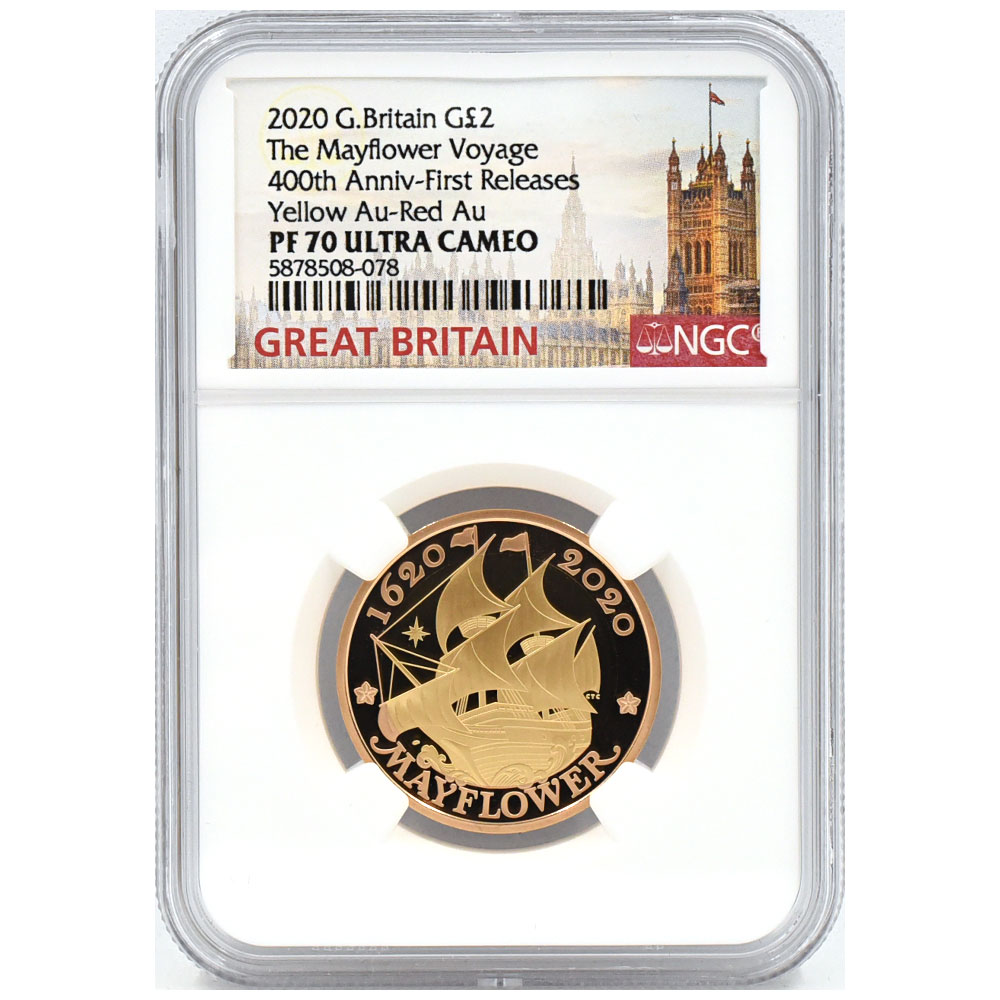 イギリス 2020 エリザベス2世 2ポンド 金貨 NGC PF70UC メイフラワー号出航400周年 5878508078