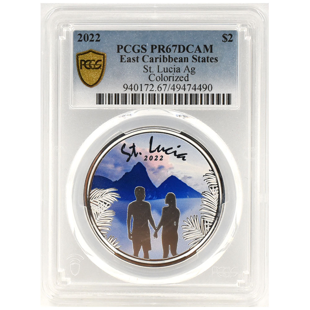 HOME > 商品一覧 > 東カリブ セントルシア 2022 エリザベス2世 2ドル 1オンス 銀貨 PCGS PR67DCAM カップル 49474490