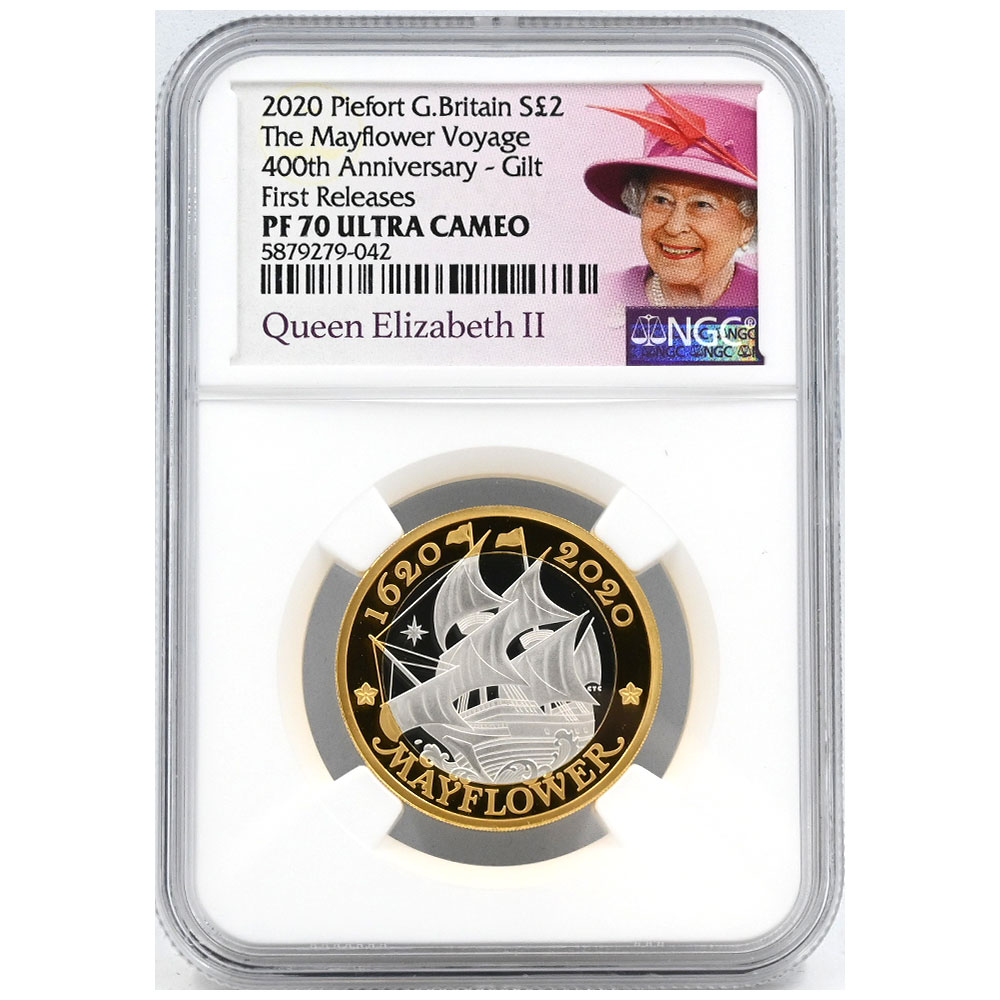 イギリス 2020 エリザベス2世 2ポンド 銀貨 NGC PF70UC メイフラワー号出航400周年 5879279042