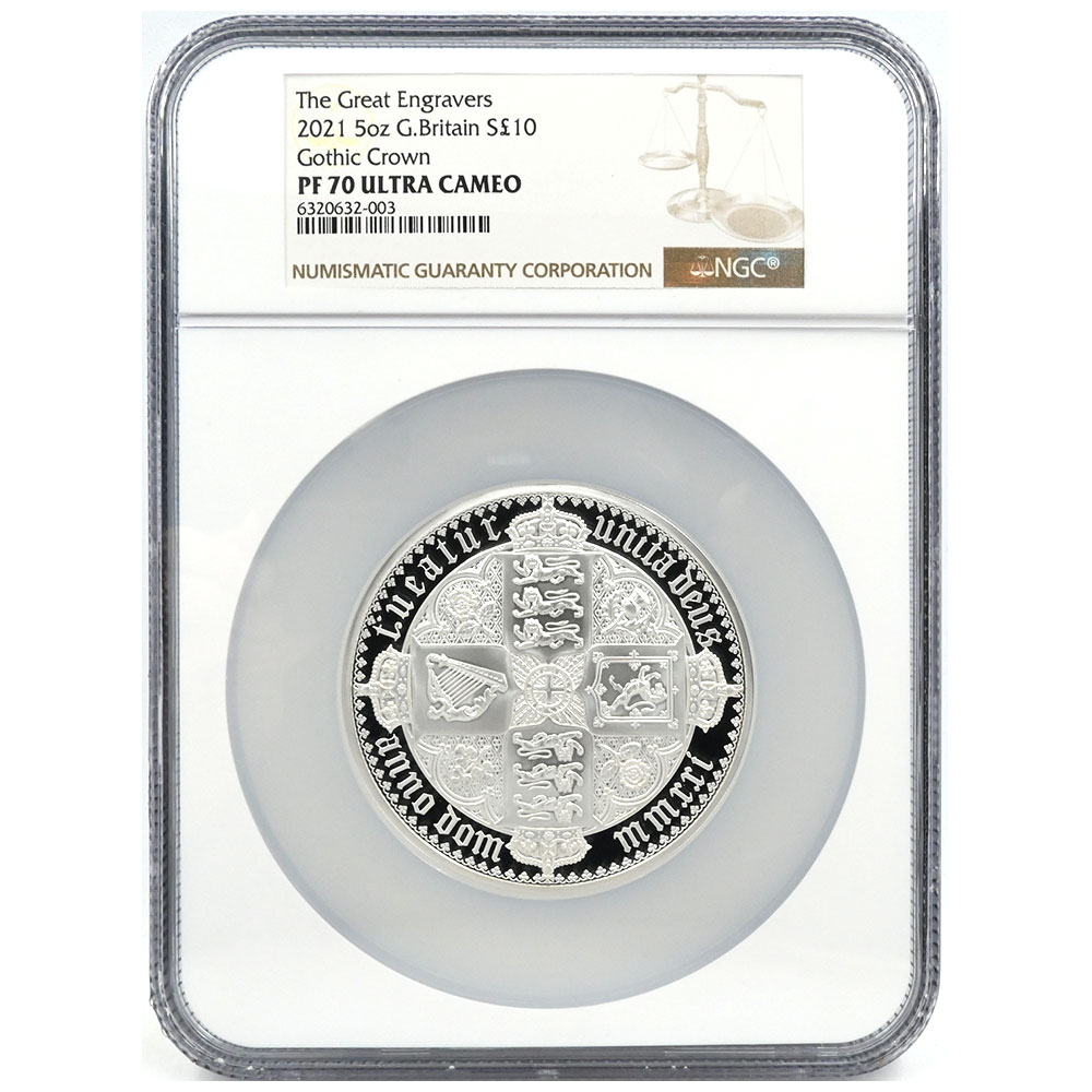 イギリス 2021 エリザベス2世 10ポンド 5オンス 銀貨 NGC PF70UC ゴチッククラウン リバースシールド 6320632003