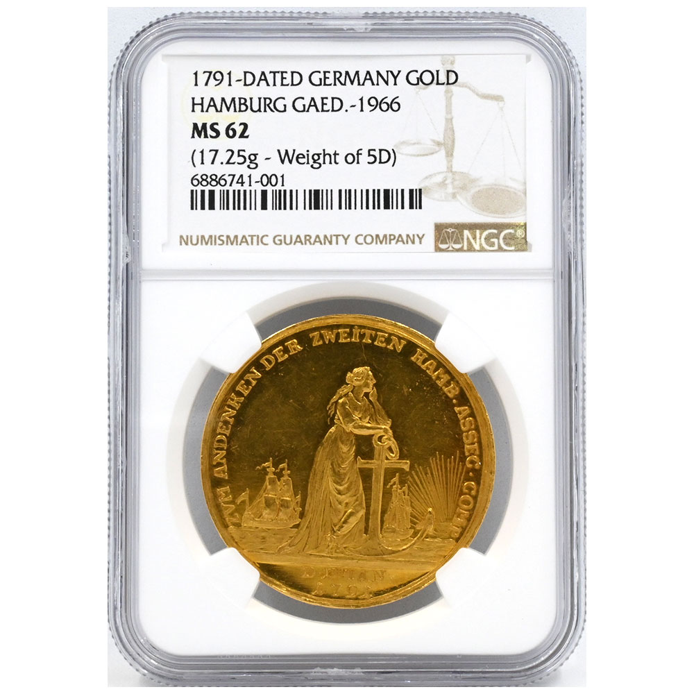 ドイツ 1791-DATED 1/2ポルトガレッサー 金貨 NGC MS62 ハンブルク GAED-1966 6886741001