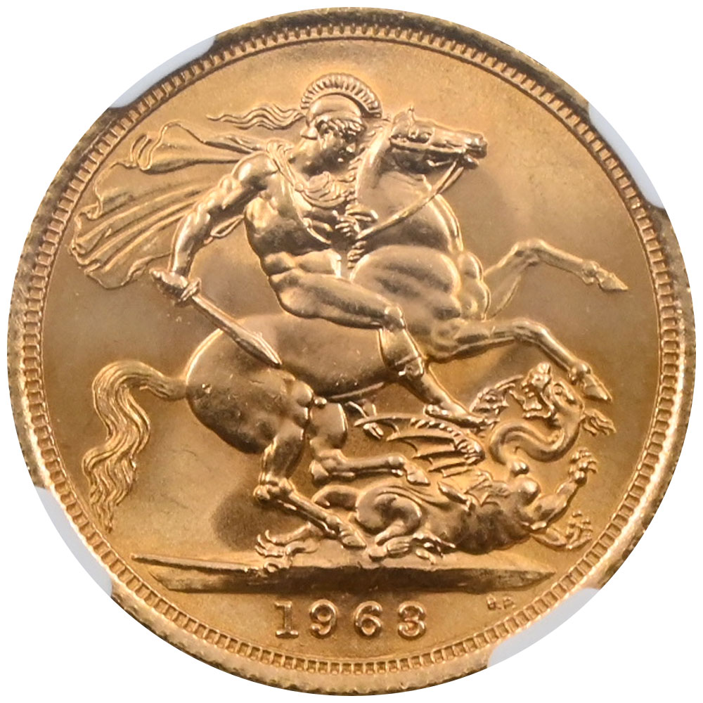 イギリス 1963 エリザベス2世 1ソブリン 金貨 NGC MS64 聖ジョージの竜退治 6945658016