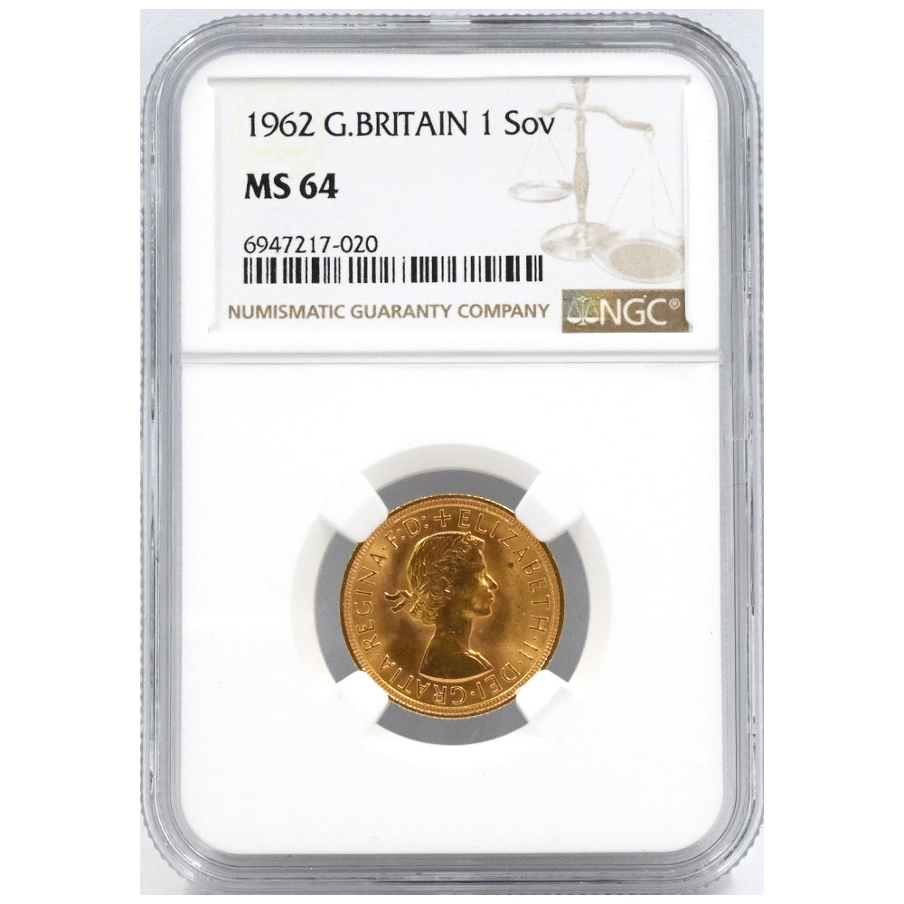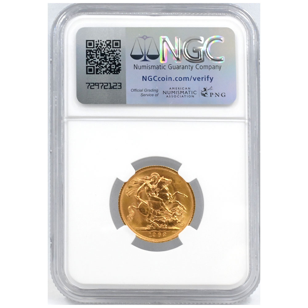 イギリス 1962 エリザベス2世 1ソブリン 金貨 NGC MS64 聖ジョージの竜退治 6947217020