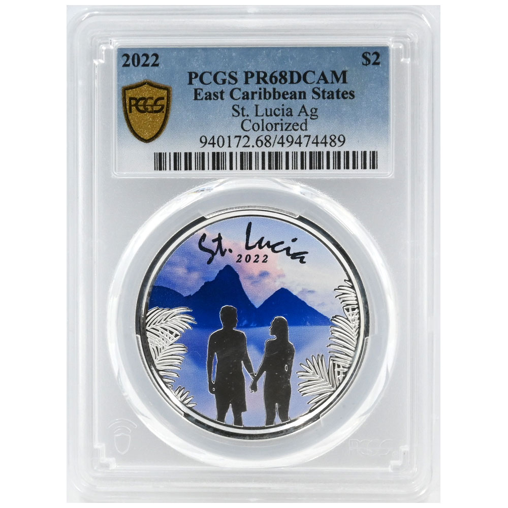 HOME > 商品一覧 > 東カリブ セントルシア 2022 エリザベス2世 2ドル 1オンス 銀貨 PCGS PR68DCAM カップル 49474489
