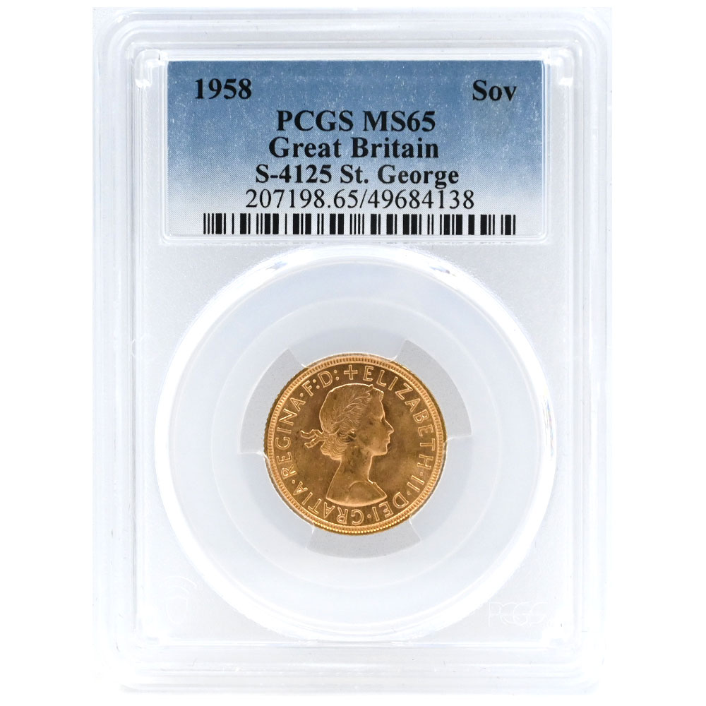 HOME > 商品一覧 > イギリス 1958 エリザベス2世 ソブリン 金貨 PCGS MS65 聖ジョージの竜退治 49684138