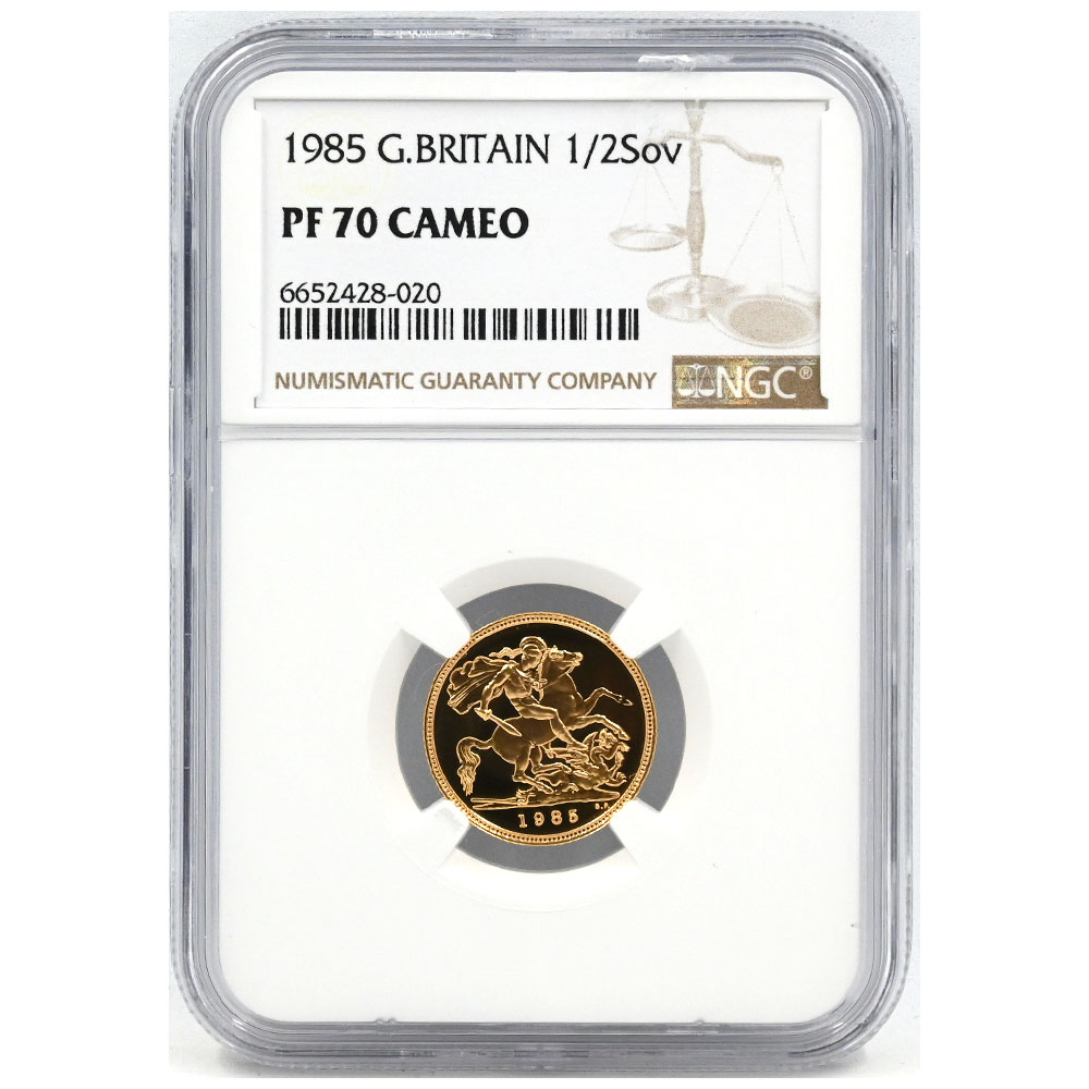 イギリス 1985 エリザベス2世 ハーフソブリン 金貨 NGC PF70CAMEO 聖ジョージの竜退治 6652428020