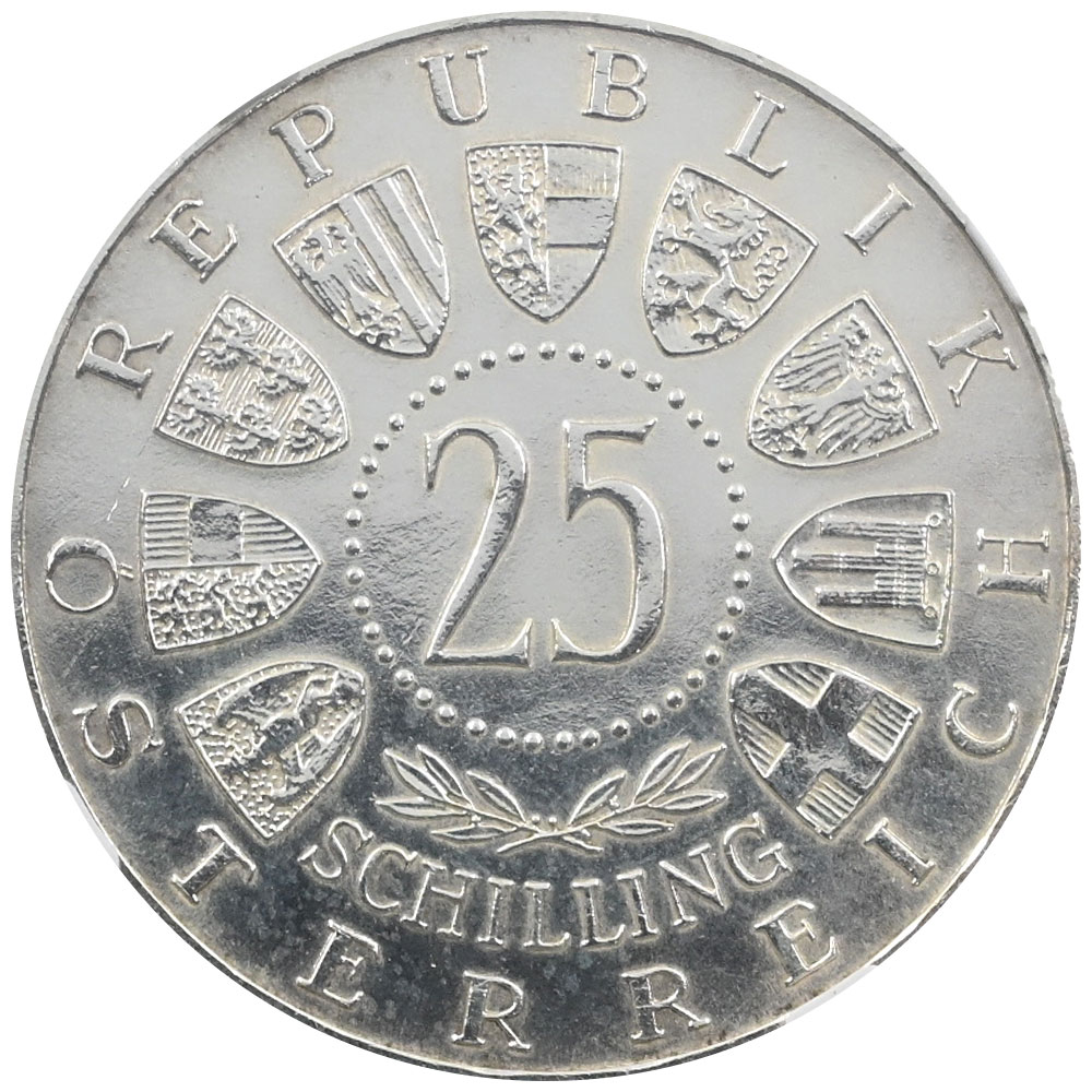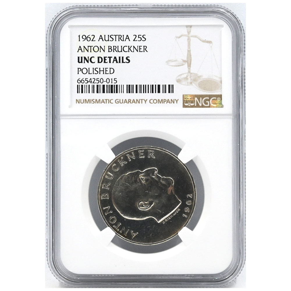 オーストリア 1962 25シリング 銀貨 NGC UNC DETAILS アントン・ブルックナー 6654250015