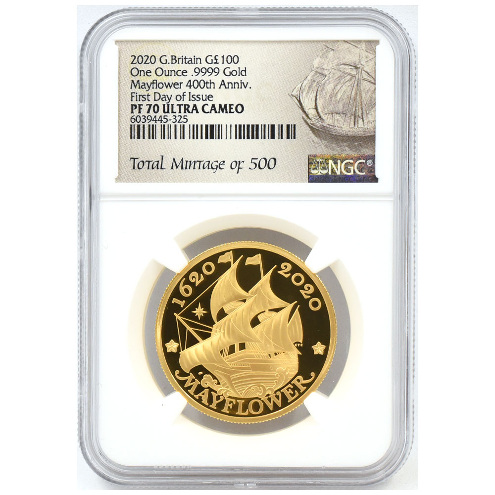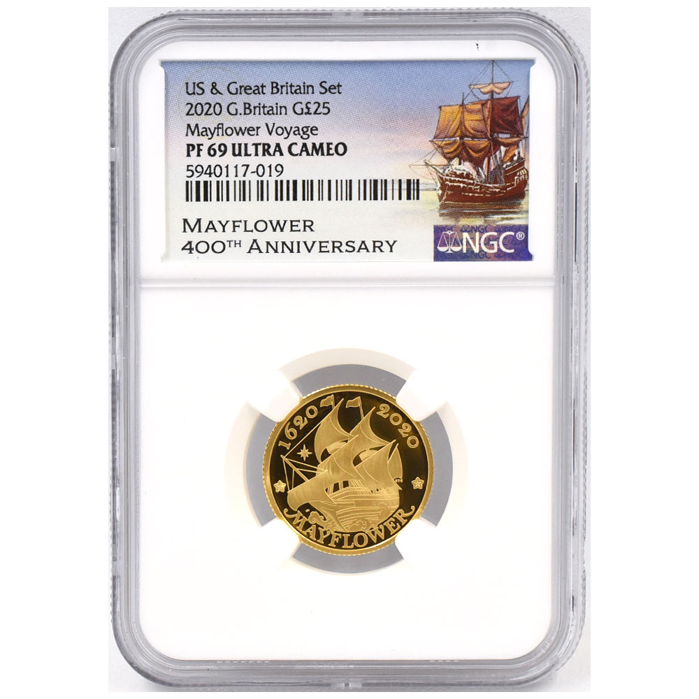 HOME > 商品一覧 > 【4枚セット】アメリカ/イギリス 2020 エリザベス2世 10ドル/2ポンド/25ポンド/100ポンド 金貨 NGC PF69UC/PF70UC メイフラワー号出航400周年 5940117018