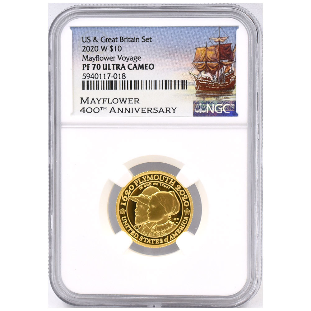 【4枚セット】アメリカ/イギリス 2020 エリザベス2世 10ドル/2ポンド/25ポンド/100ポンド 金貨 NGC PF69UC/PF70UC メイフラワー号出航400周年 5940117018