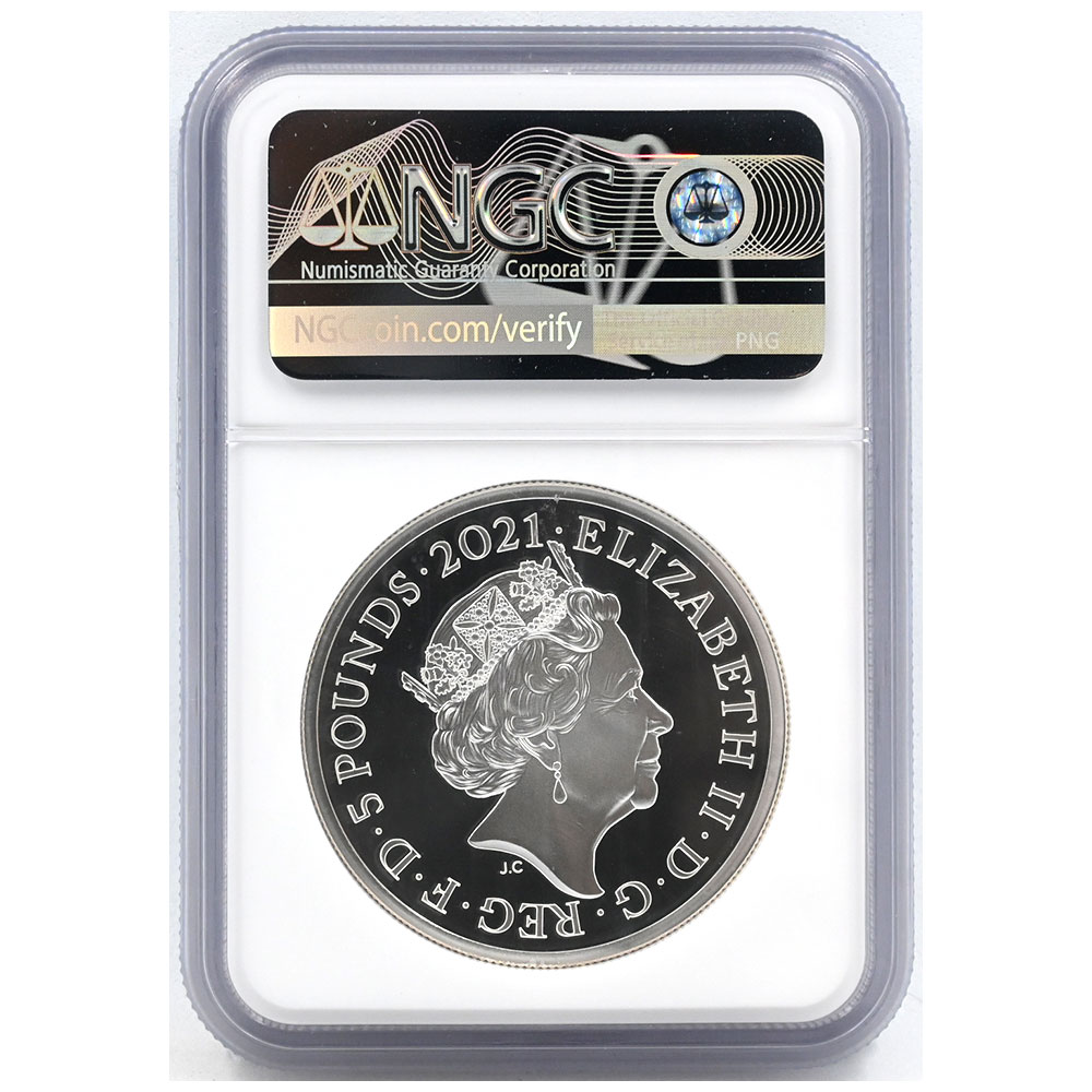 イギリス 2021 エリザベス2世 5ポンド 2オンス 銀貨 NGC PF70UC ゴチッククラウン ポートレート 6320958008
