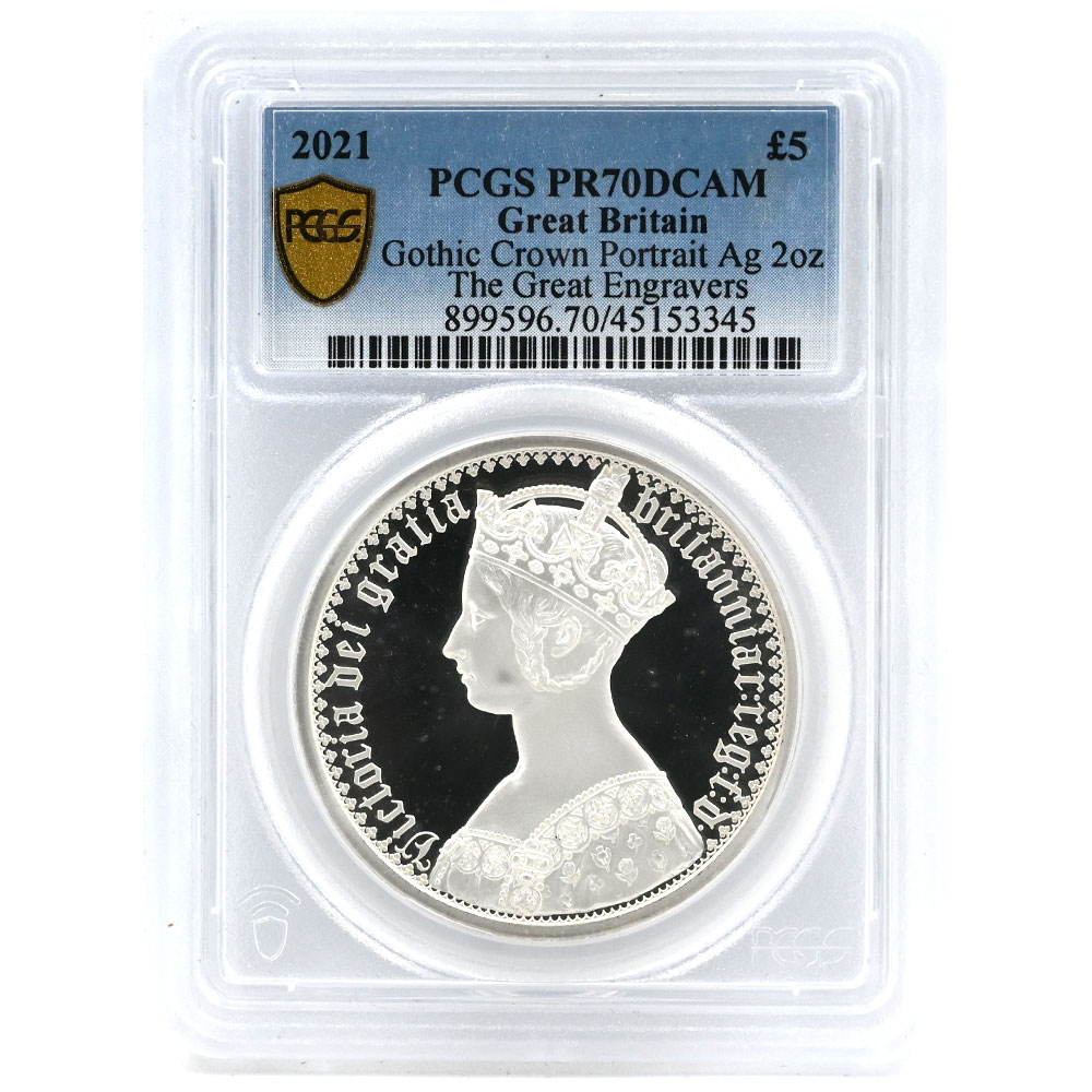 イギリス 2021 エリザベス2世 5ポンド 2オンス 銀貨 PCGS PR70DCAM ゴチッククラウン ポートレート 45153345