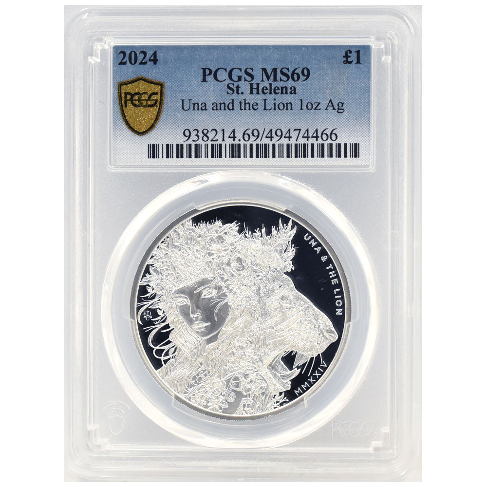 セントヘレナ 2024 チャールズ3世 1ポンド 1オンス 銀貨 PCGS MS69 ウナとライオン 49474466