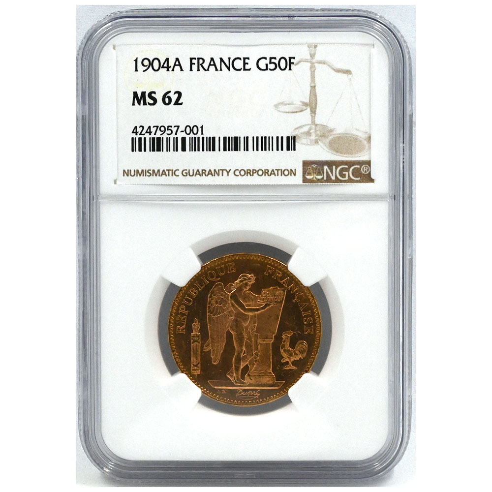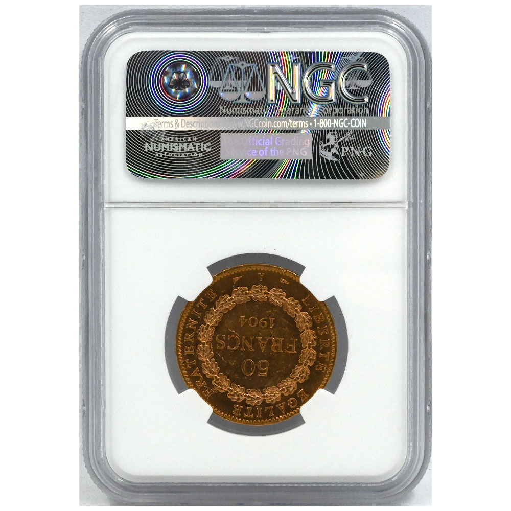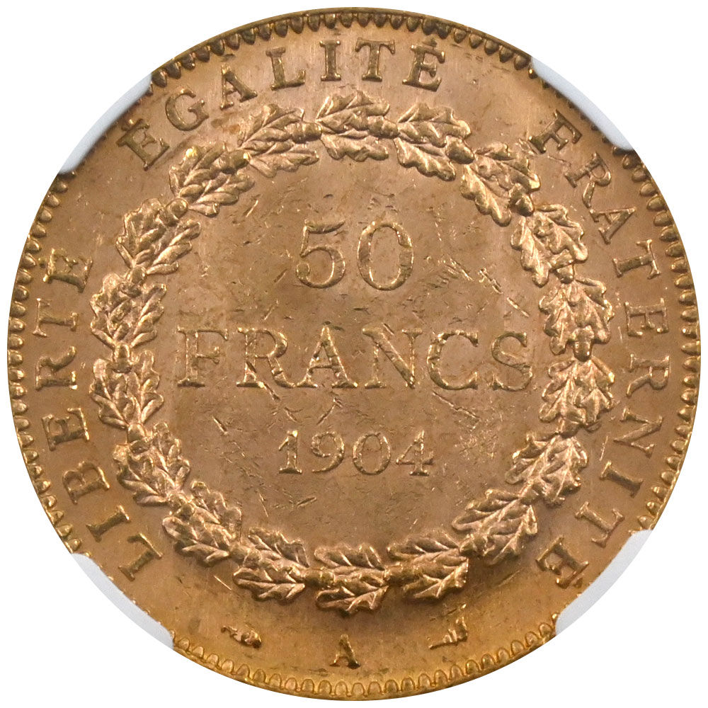 フランス 1904A 50フラン 金貨 NGC MS62 エンジェル 4247957001